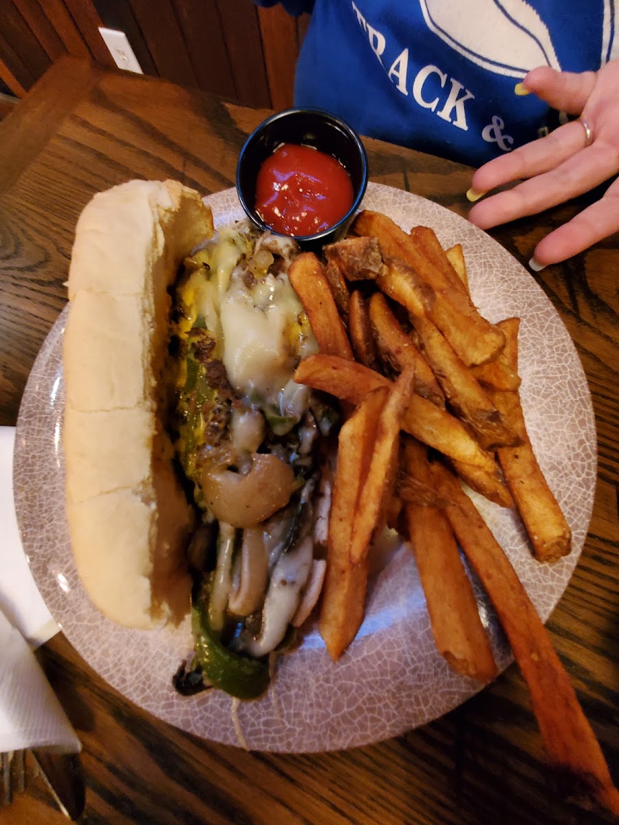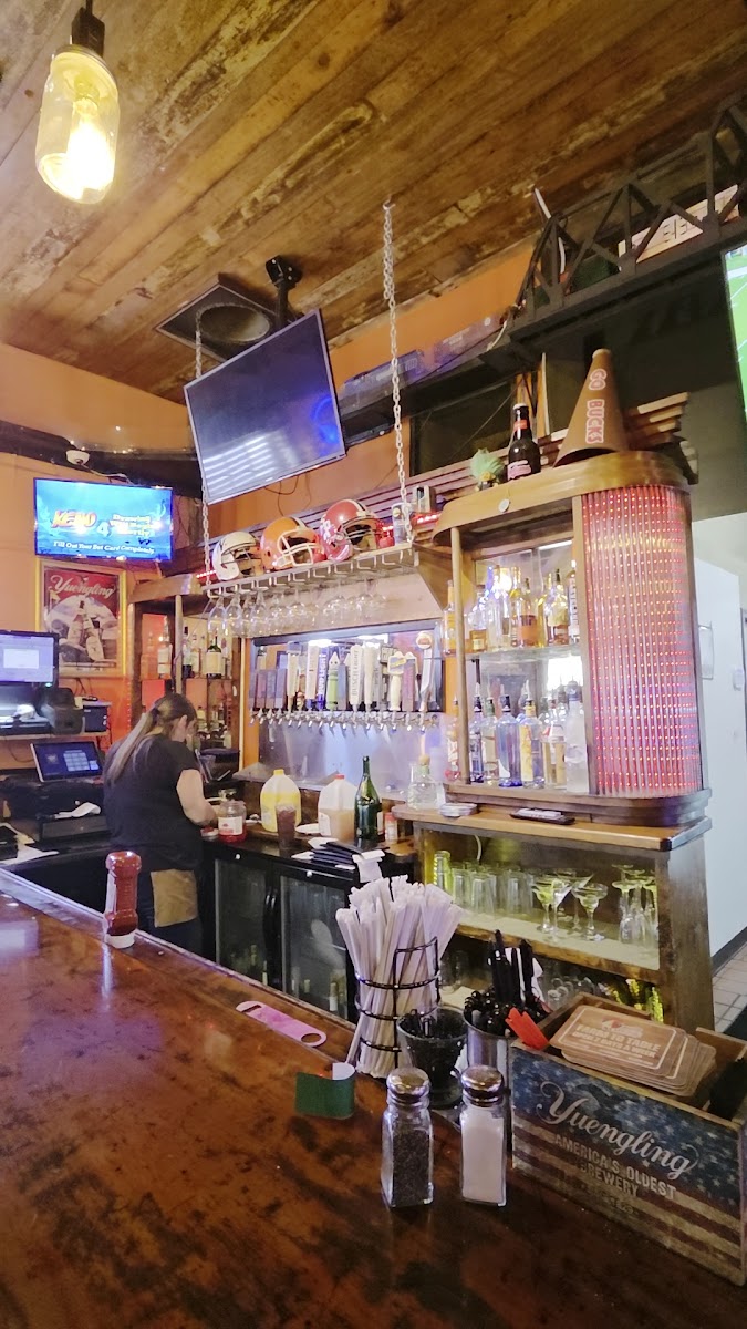 A neat cozy atmosphere inside, decorated with lots of sports memorabilia and other. The food was average bar food. Service was accurate and timely. Price was okay.