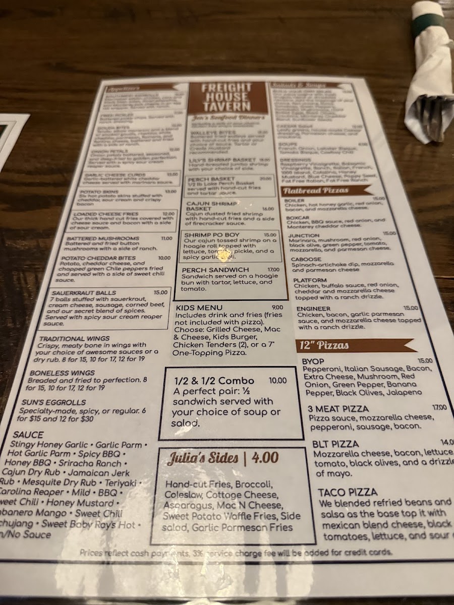 The menu at Freight House Tavern offers a relaxed and approachable selection of classic bar and grill fare, perfect for casual meals with friends or family. You’ll find comforting options like hearty burgers served alongside sweet potato waffle fries, flavorful flatbread pizzas, and shareable appetizers such as garlic parmesan wings and gouda bites. These dishes complement the tavern’s cozy atmosphere, inviting guests to unwind over familiar favorites.
